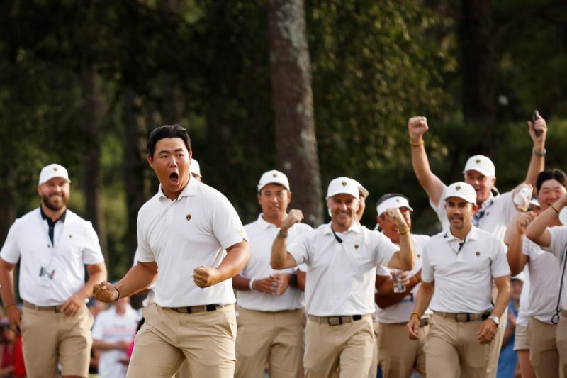 수정 김주형 인터내셔널팀 분위기 반전 에 큰 몫 프레지던츠컵 승점 7 11로 미국팀에 여전히 뒤지나 최종일 실낱같은 역전 희망 남겨 세계랭킹 1위 셰플러도 섕크 동영상