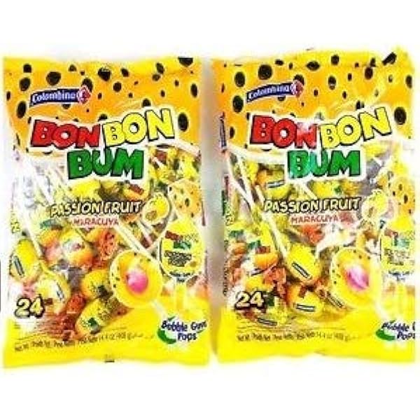Amazon Com Colombina Bon Bon Bum Bubble Gum Lollipops Maracuya Passion Fruit Bag Of 24 Suckers And Lollipops Grocery Gourmet Food