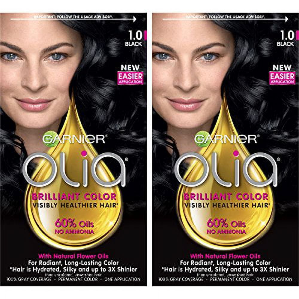 Garnier Olia Ammonia Free Brilliant Color Oil Rich Permanent Hair Color 1 0 Black Pack Of 2 Black Hair Dye Walmart Com
